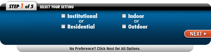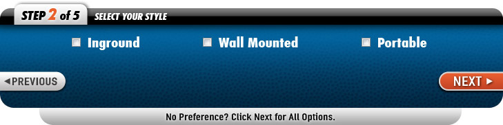 Find your perfect hoop in 5 Easy Steps! If you have no preference, click next for all options. On this page, indicate whether your hoop is intended for commercial or residential use, and whether it will be used in an indoor or outdoor setting.