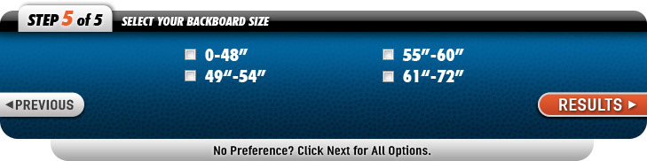 Below are the hoops that meet your criteria selected on the prior page. To further refine your search, tell us whether you are looking for an in-ground, wall-mounted or portable hoop. On the next page you will be able to refine your search further.